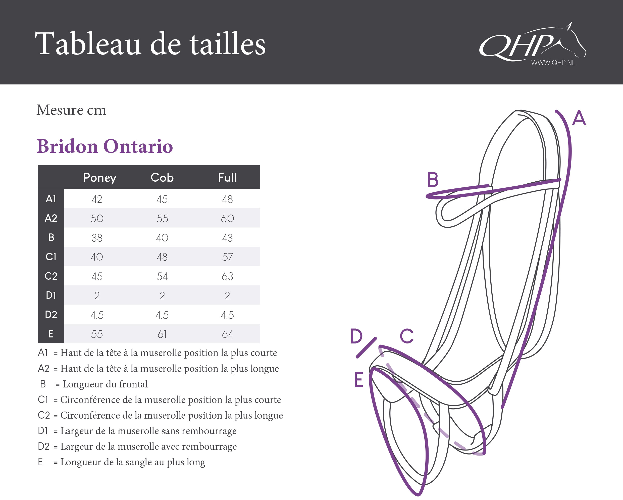 Bridon Ontario QHP en cuir de forme anatomique avec une doublure en fourrure synthétique douce.