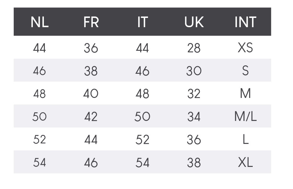 Correspondance des tailles hommes :